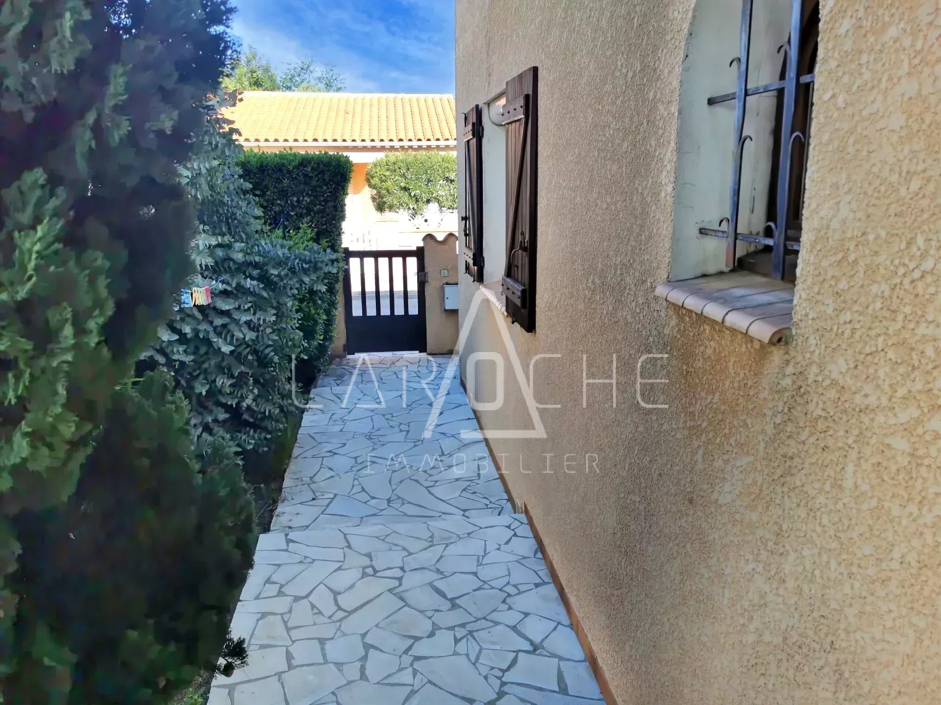 Proche centre ville , villa 3 faces de 115 m² sur parcelle de 285 m². Se composant : au rez-de-chaussée, belle pièce de vie avec cuisine équipée et ouverte, 1 chambre, toilettes indépendant, une salle de bains + douche, un dressing, un beau garage, terrasse et jardin.